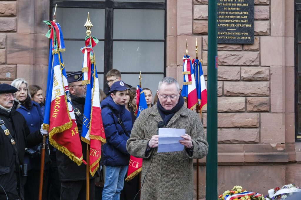 Parmi les invités figuraient le Commissaire aux Droits de l’Homme du Conseil de l’Europe, le docteur Michael O’Flaherty, le consul d’Allemagne Thomas Kern, le recteur de l’académie de Strasbourg, Olivier Klein. Le directeur du Mémorial du camp de concentration de Natzweiler-Struthof, Michaël Landolt, le délégué du FSJU – Fonds social juif unifié -, Laurent Gradwohl.