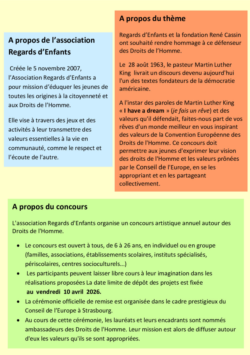 En 2025-2026, les jeunes concourent sur le thème : « I have a dream». Nous vous invitons à y participer nombreuses et nombreux.